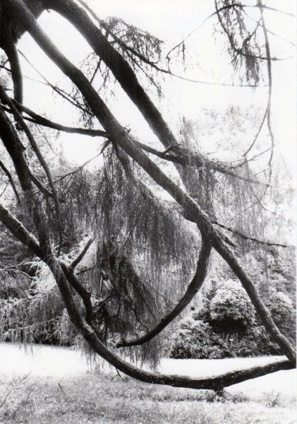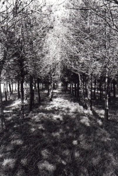 Humanity has come to occupy the space between the trees. When we think of trees now it is more likely to be in the singular than in a forest where we are surrounded without light or perspective. Camera in hand tree portraits are irresistible. Individually they have become our friends, our pets, much like we never imagine dogs now in packs. Trees de-natured until they only exist by being planted or die by being cut. Imagine forest, primeval forest, in all its dark shades of merging greens and browns so difficult to photograph without the serendipity of transcendent light. Forest that once consumed us and lifted our arms up into the branches leaving the camera below and fixing our hands to the purpose of not falling.
