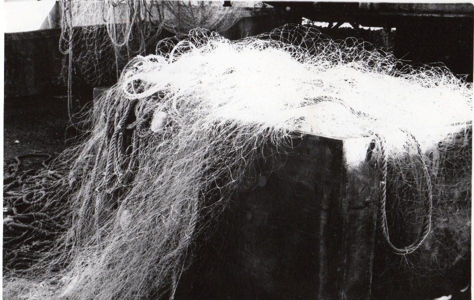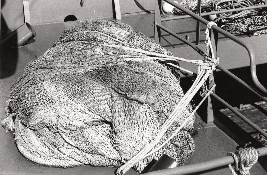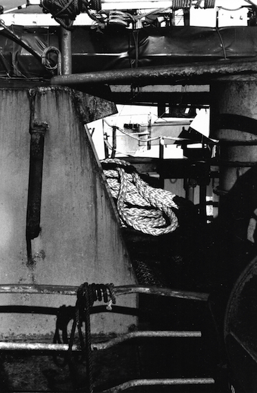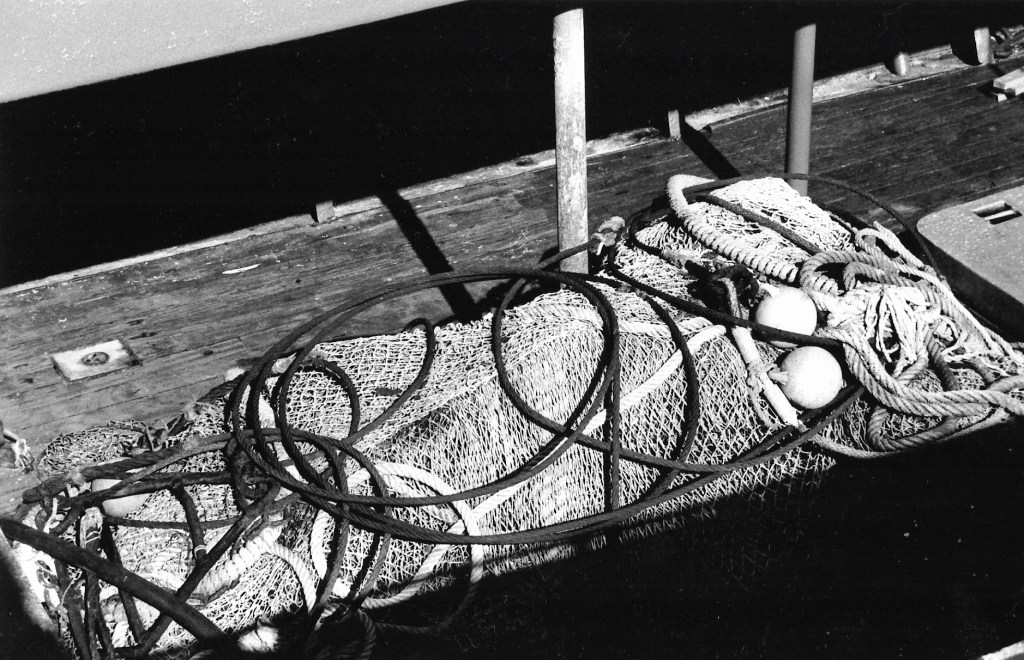 Plastic ropes, monofilament nets, iron and steel describe the power of the ocean and our increasingly fatal attempts to draw life from it. The unfathomed length of rope measure the distance we have come from the niche we once held in our marine mammal ancestry.
